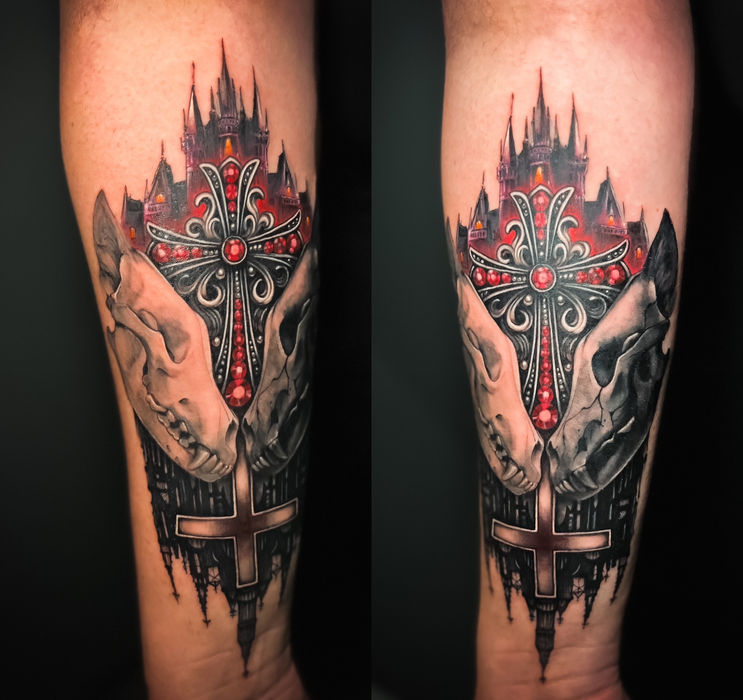Aliona is the owner of Valkyrie Hall, award winning watercolor painter and a tattoo artist. Originally from Ukraine, Aliona started her tattoo journey in 2017 and opened her own private studio in 2019. She is well known for her realistic faces, jewelry and floral work, mainly specializing in illustrative realism style. Her artwork carries a distinct European vibe and a light hand, which her clients greatly appreciate.